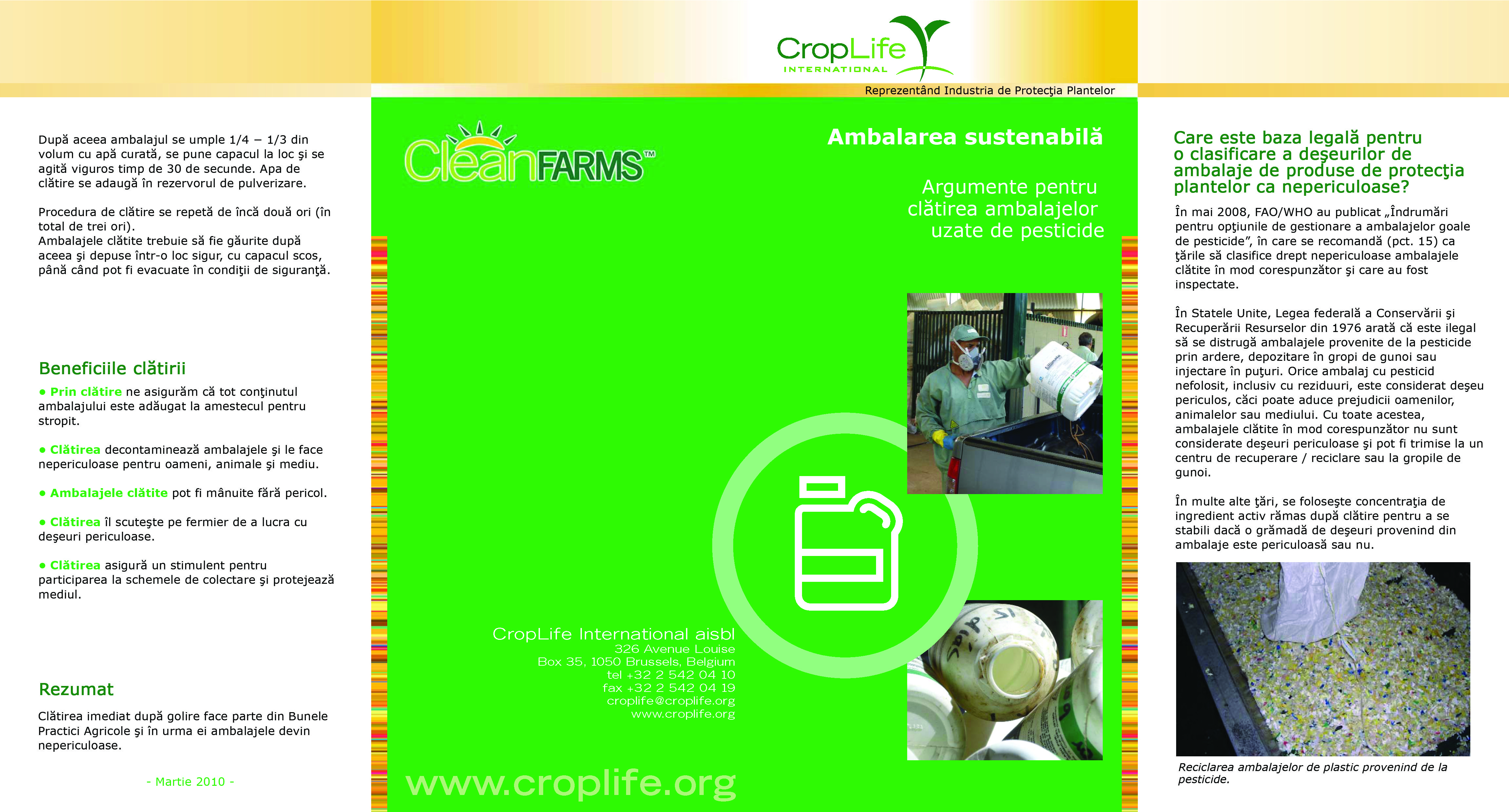 Pentru mai multe informaţii privind gestiunea deşeurilor provenite de la ambalajele de produse de protecţia plantelor vă rugăm să consultaţi International code of conduct on the distribution and use of pesticides, FAO.